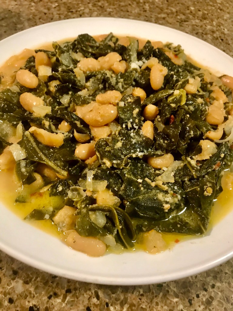 Growing up in an Italian family, I have always enjoyed cooking and most of my favorite memories were with my grandma Rose in the kitchen. She was famous for her meatballs and gravy, but one thing I’ve always loved was escarole and white beans. I have had a serious craving for this lately and decided that it’s what we were having for dinner this week. Unfortunately, I couldn’t find any escarole so I improvised! This recipe is really simple and honestly, I think I might even prefer this over escarole. This vegetarian version of the classic stewed collard greens came out better than I expected, and my family absolutely loved it.
